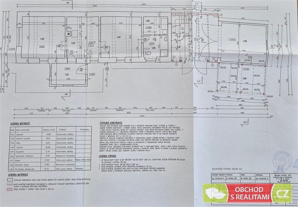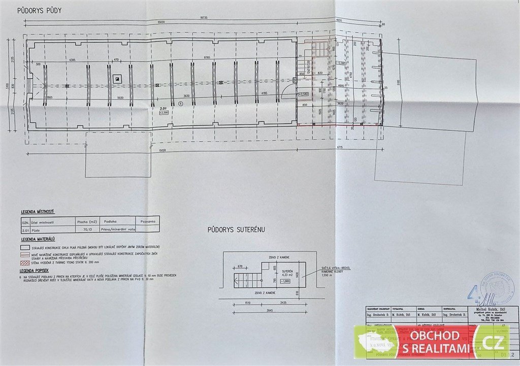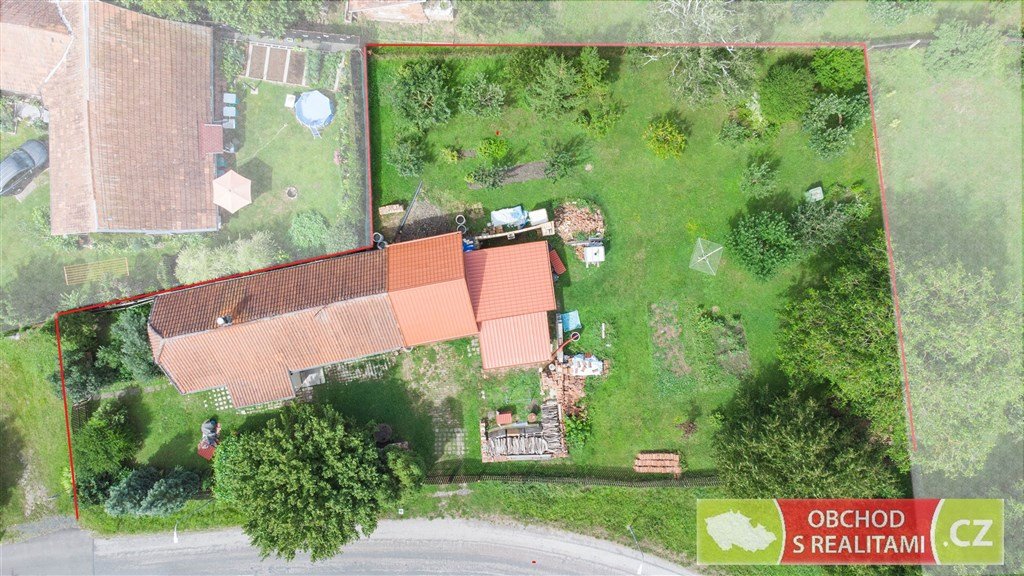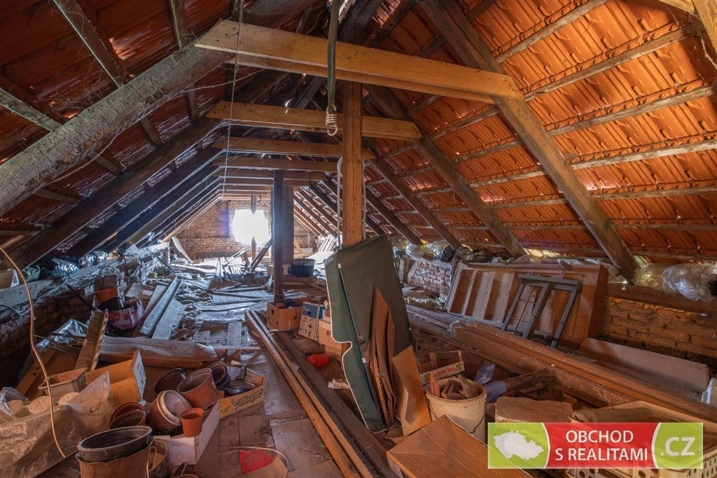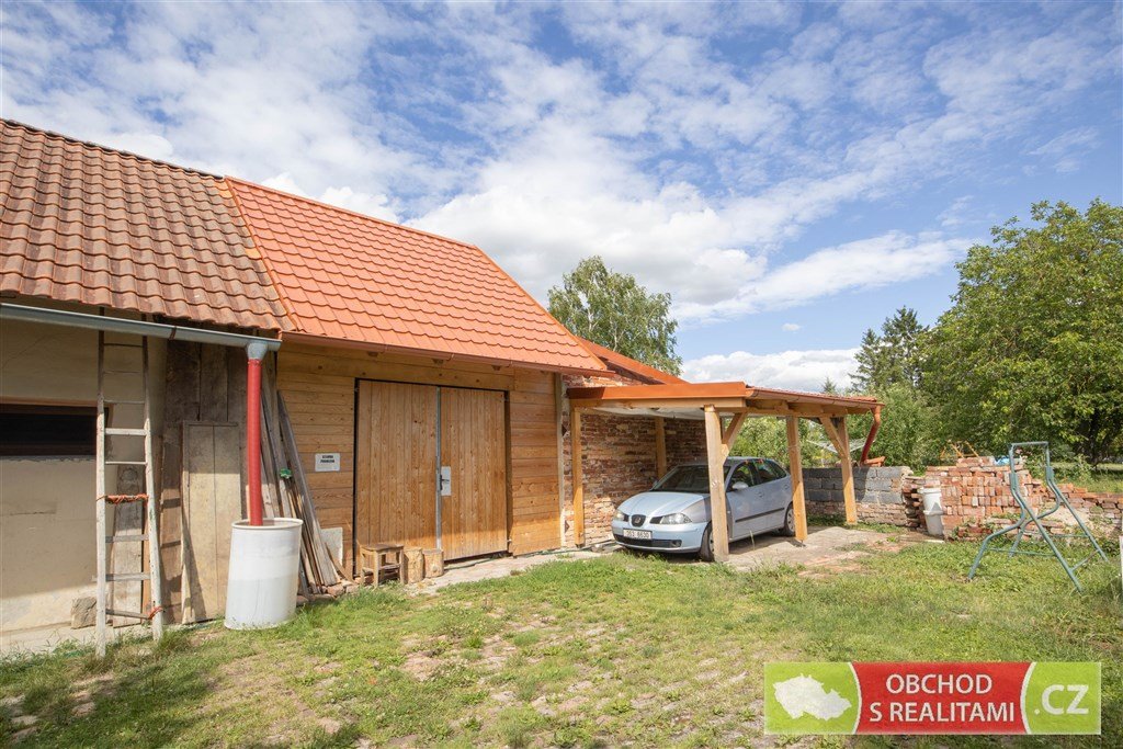 Rodinný dům nabízí dispozici 2+1, malý sklep, volnou půdu (dosud bez vestavby pokojů), stodolu s velkými vraty (například možnost parkování nebo skladování), velkou dílnu a venkovní kryté parkovací stání. Protože na úpravy domu bylo vydáno (dosud platné) stavební povolení, máme pro Vás k dispozici kompletní zaměření jednotlivých částí domu, řez domem, technickou zprávu a jiné podklady ze stavební dokumentace. Stavební povolení je platné do 8/27, a tak je dostatek času realizovat případné další úpravy domu. Maximální zastavitelnost je 40% z celkové výměry pozemku.
