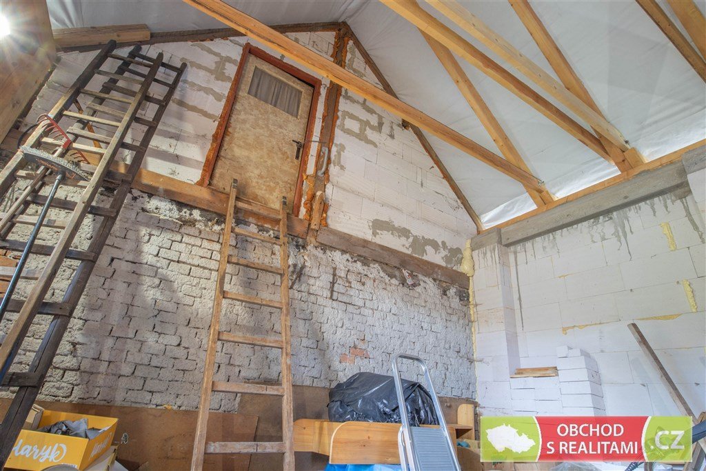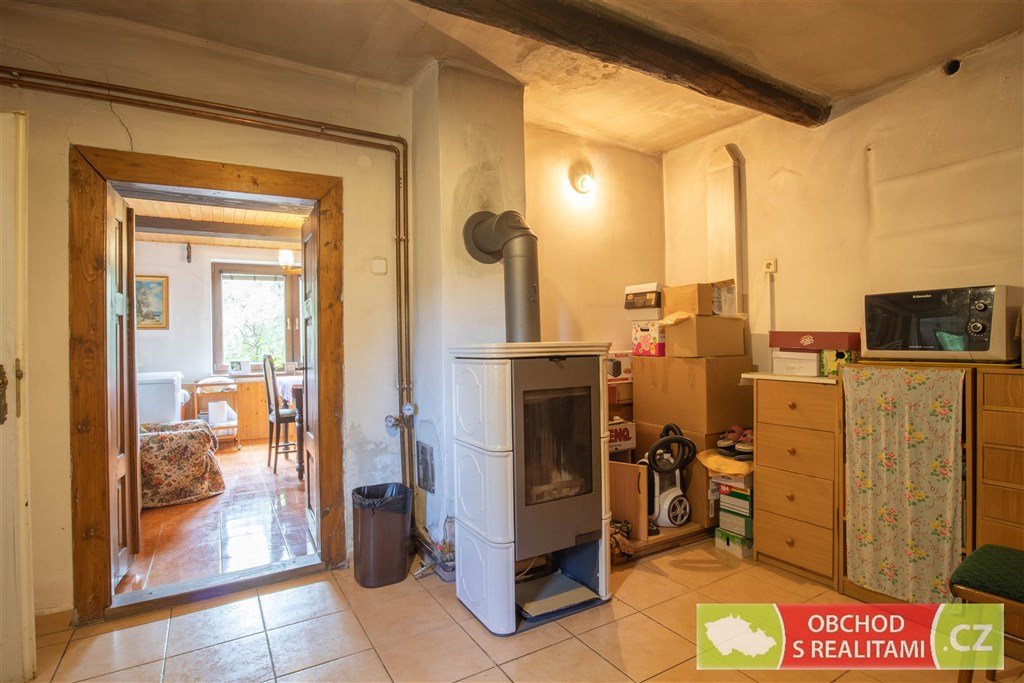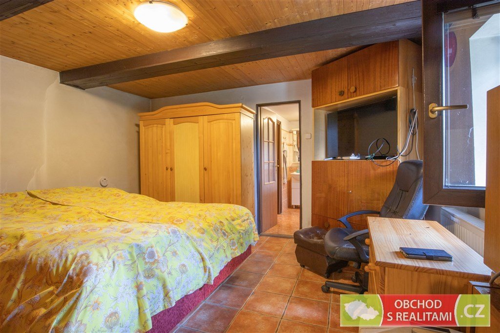 Rodinný dům nabízí dispozici 2+1, malý sklep, volnou půdu (dosud bez vestavby pokojů), stodolu s velkými vraty (například možnost parkování nebo skladování), velkou dílnu a venkovní kryté parkovací stání.