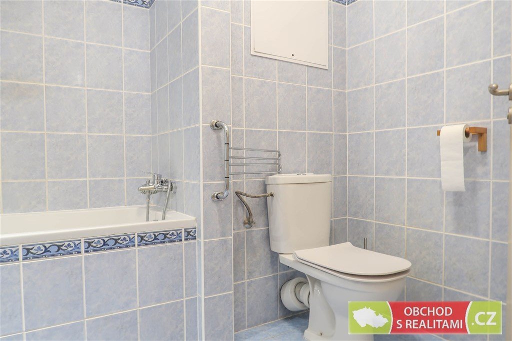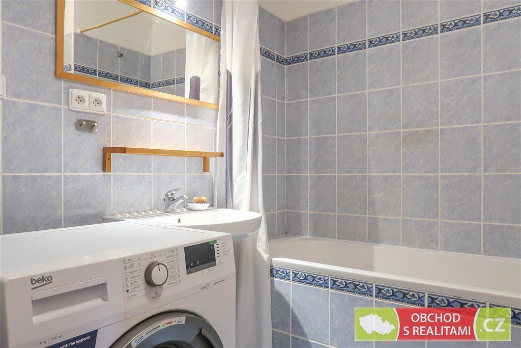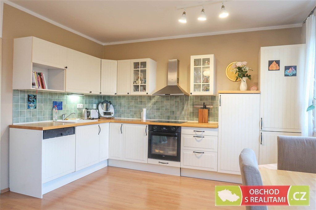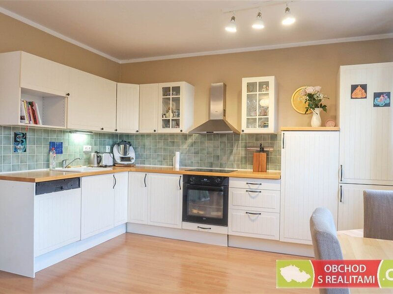 V obývacím pokoji je kuchyňská linka; vybavena kombinovanou chladničkou s mrazákem, myčkou nádobí, pečící troubou, indukční varnou deskou, digestoří a jídelním stolem. Koupelna je vybavena vanou, pračku je možné ponechat po dohodě. V předsíni je umístěna velká vestavěná skříň. Ostatní vybavení bytu není součástí pronájmu.