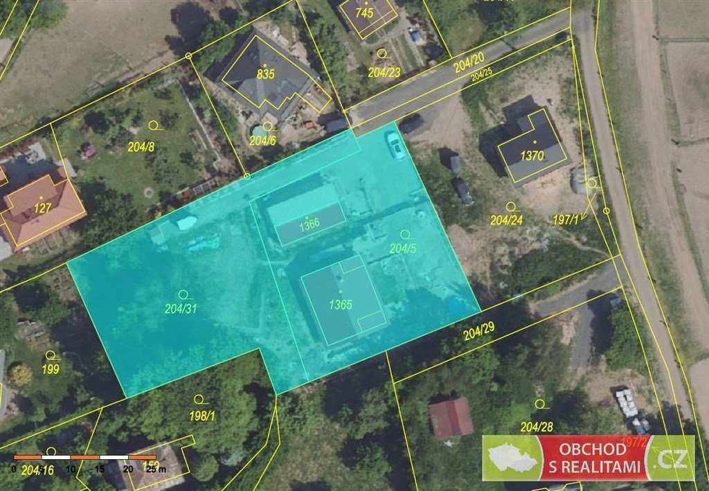 Celková výměra pozemku je 2.091 m2 (parcelní čísla 204/31 + 204/5 + st.