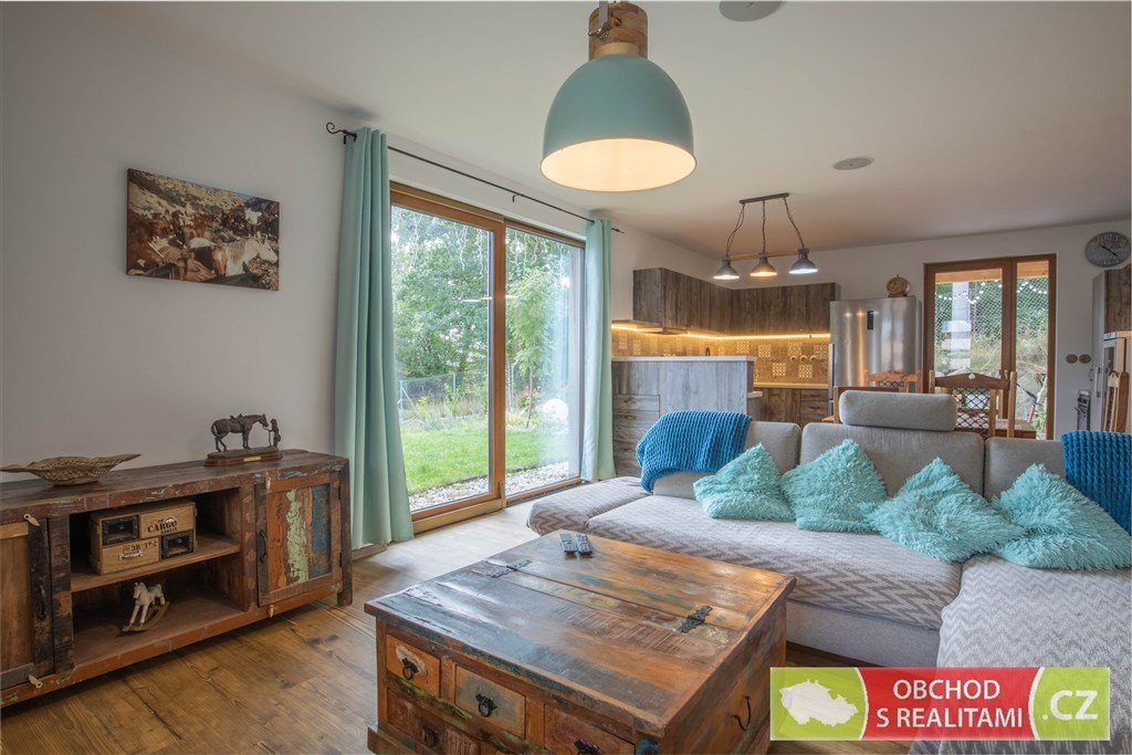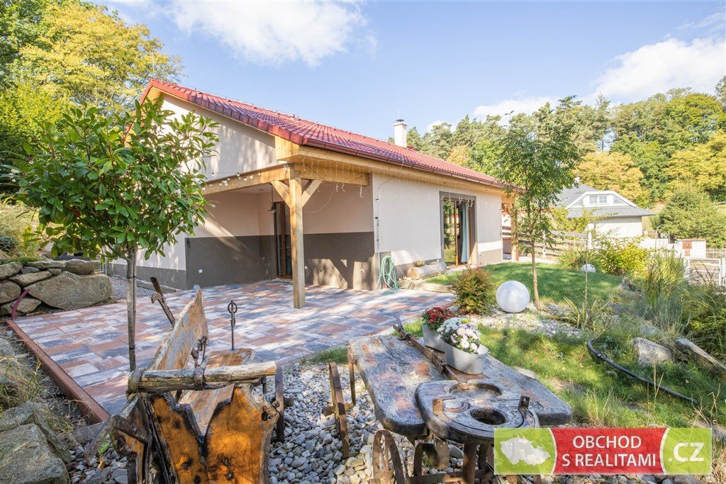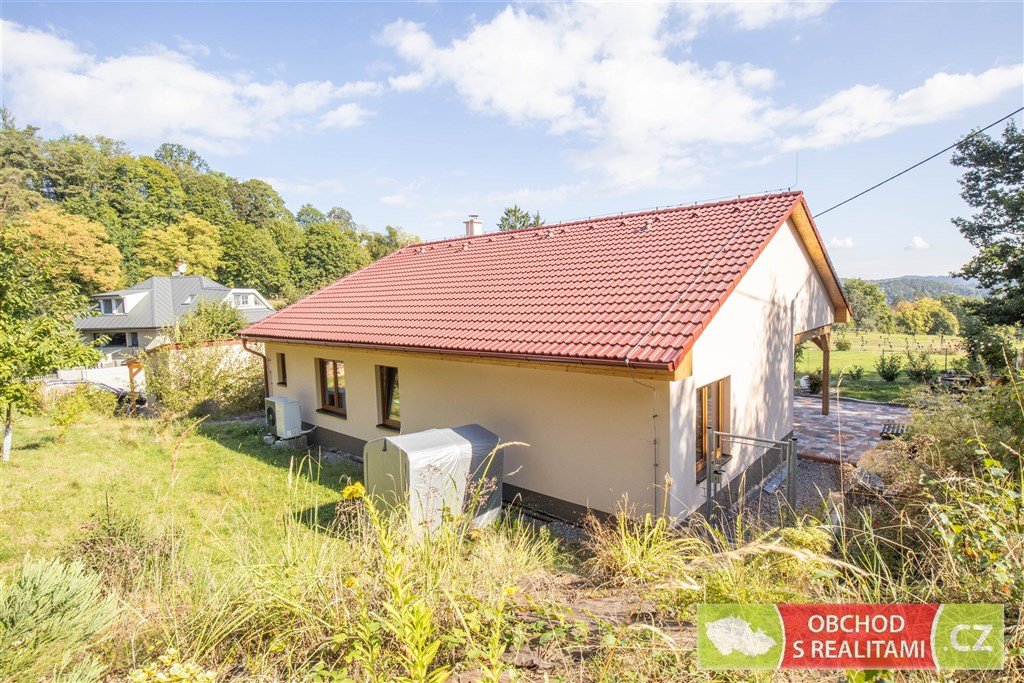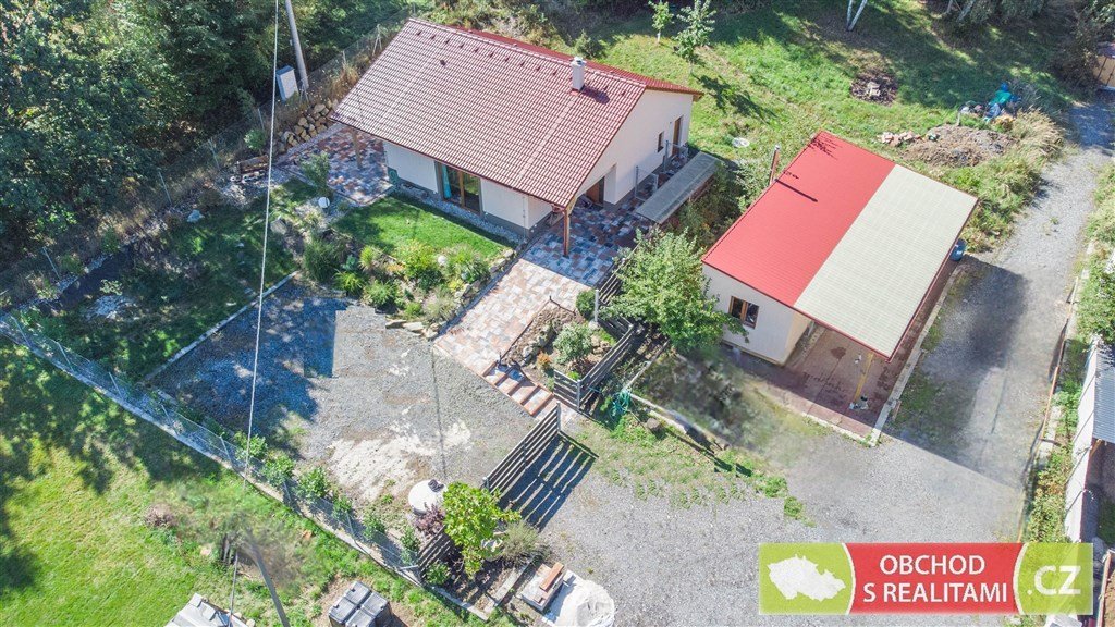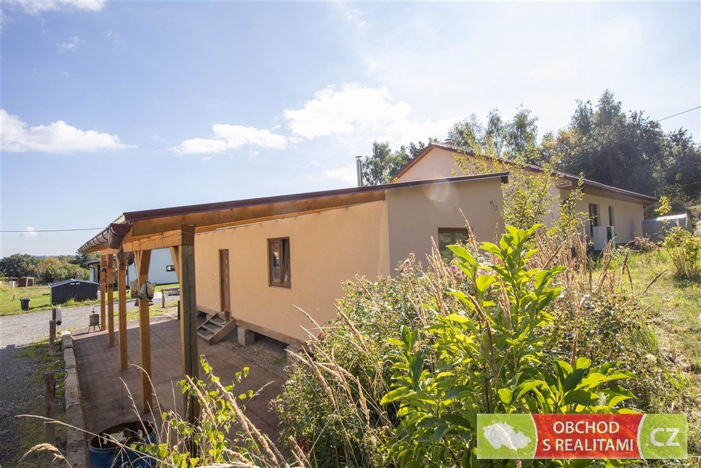 Výstavba rodinného domu byla dokončena v roce 2023. Dřevostavba vystavěná v energetické třídě A nabízí dispozici 3+KK s užitnou plochou 102 m2. Dispoziční plán domu přikládáme do fotodokumentace této inzerce. Promyšlená dispozice obsahuje technickou místnost, spíž i šatnu, tedy dostatek úložných prostor mimo obytné místnosti; dále obsahuje obývací pokoj 46 m2 s francouzským oknem a výhledem do krajiny; součástí jsou dvě koupelny, ta první se nachází u ložnic, ta druhá je přístupná ze zahrady (při pobytu venku máte k dispozici sprchový kout i WC). V celém domě je příjemné podlahové topení, v obývacím pokoji je možné topit též kamny.
