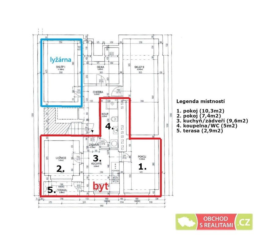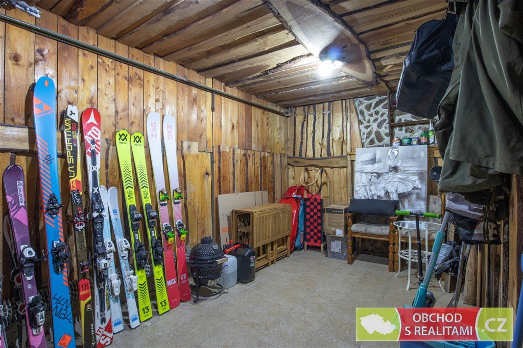 V domě se nachází společná lyžárna pro dva byty, dále se v suterénu