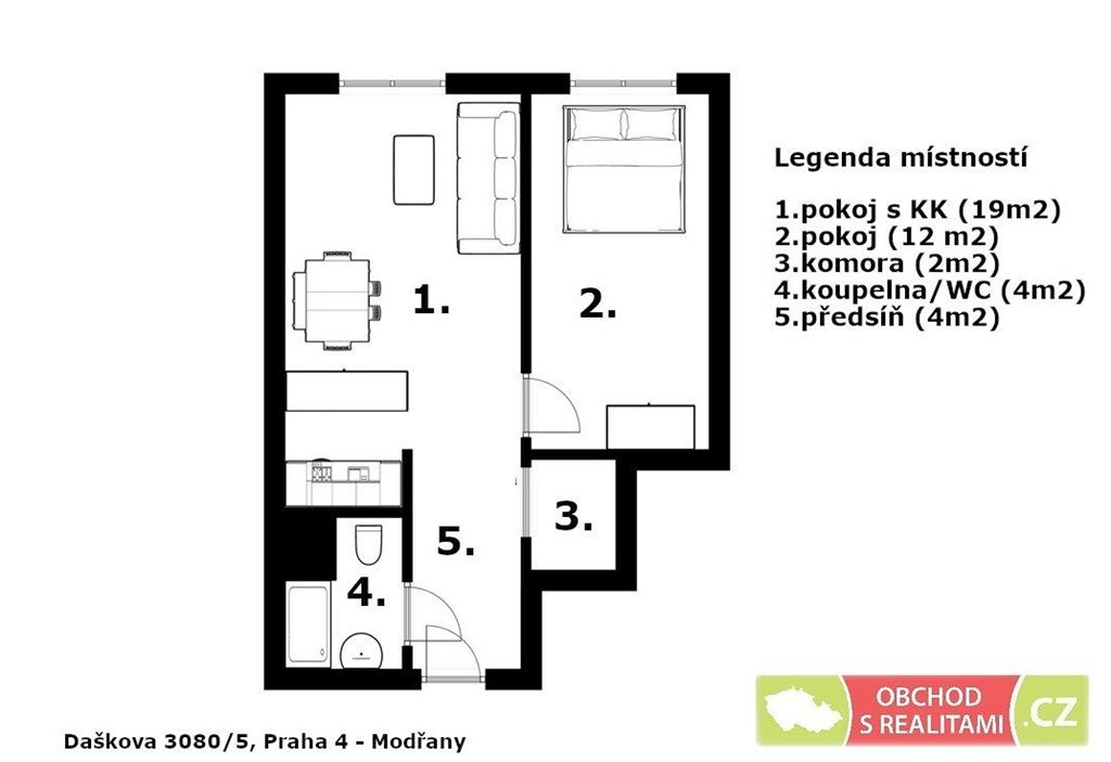 adrese Daškova 3080/5, Praha 12 / Modřany, celková výměra bytu je