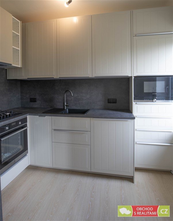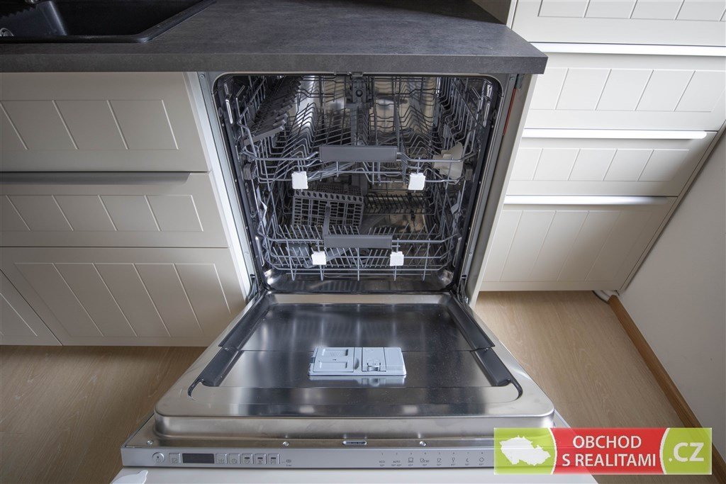 Vybavením bytu je nová kuchyňská linka s myčkou nádobí, elektrickou