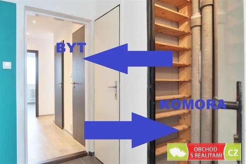 osvětlením. Přímo u vstupu do bytu se nachází praktická komora (možnost