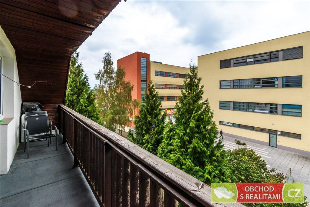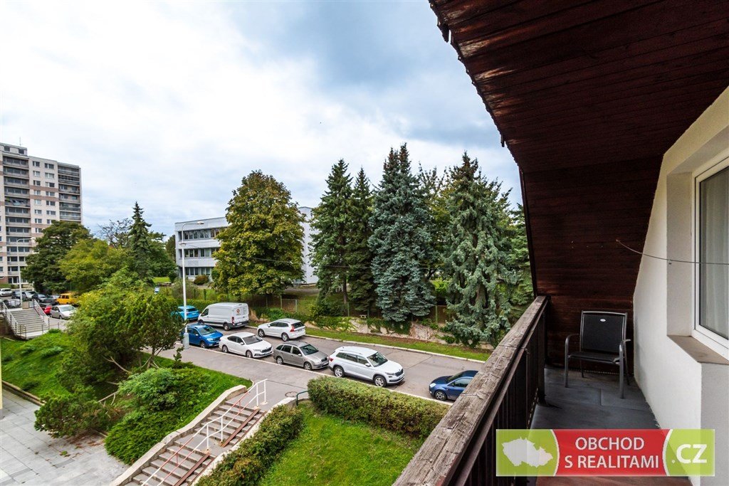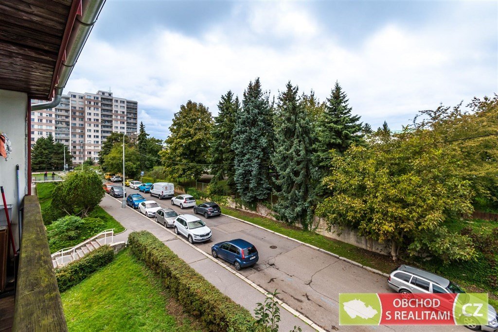 lodžie (severní orientace a výhled do ulice), z obývacího pokoje je