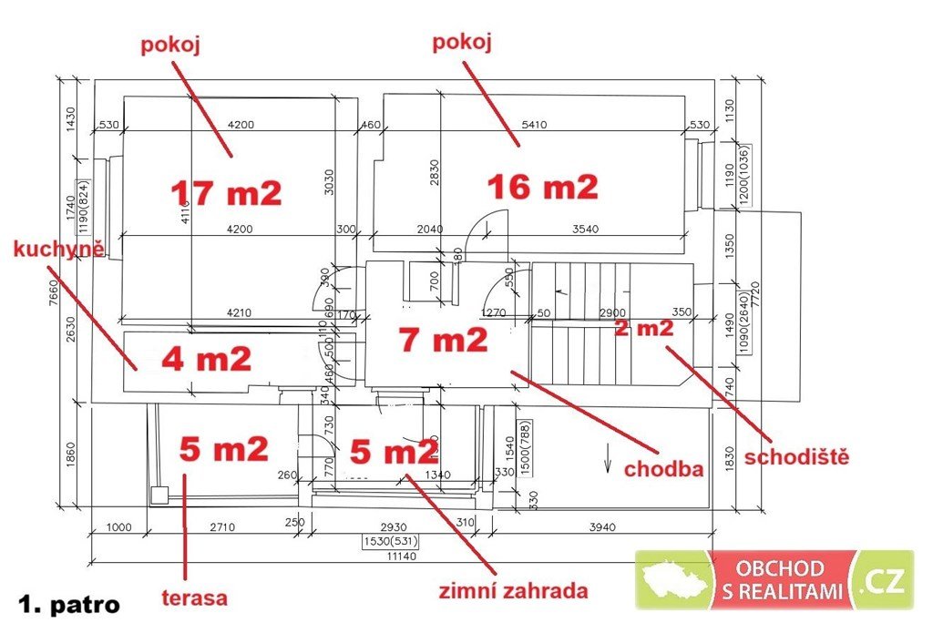 jihozápadní orientaci (též oba hlavní pokoje, terasa a zimní zahrada mají