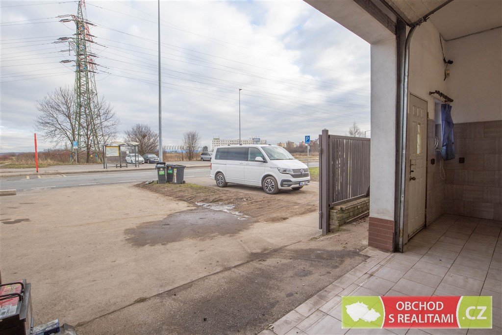 Rozměr garážových vrat a rozměr obchodního prostoru je uveden v přiloženém plánku. Obvykle volná parkovací plocha na veřejném pozemku před objektem.
