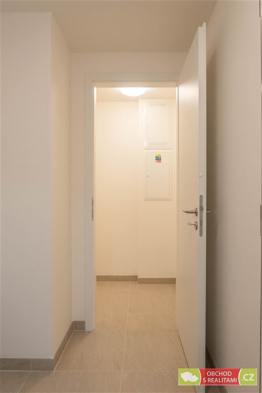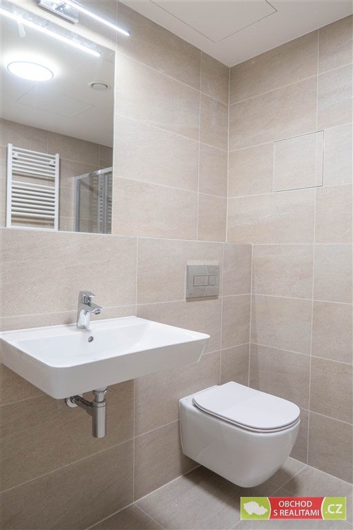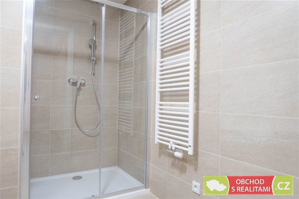 v komoře bytu. V koupelně se nachází velkorysý sprchový kout. Podlahovou