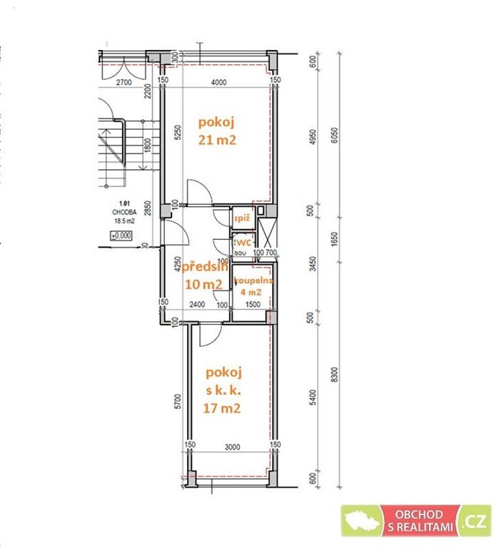 Dispoziční plánek s výměrou jednotlivých místností přikládáme. Byt