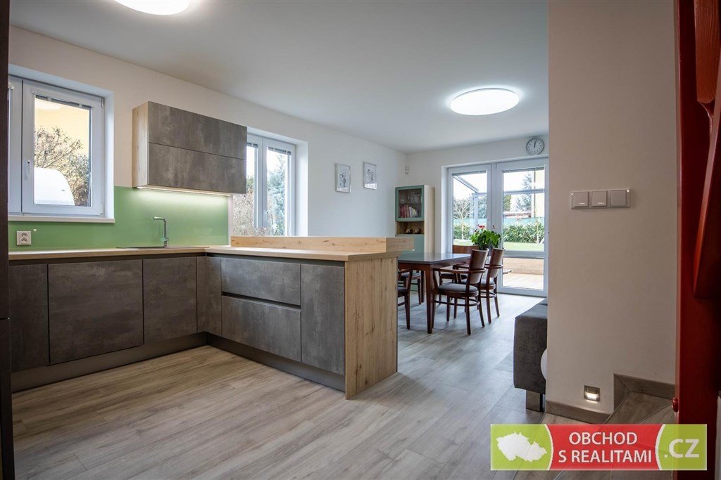 kuchyňská linka s veškerými spotřebiči; v domě je kombinace