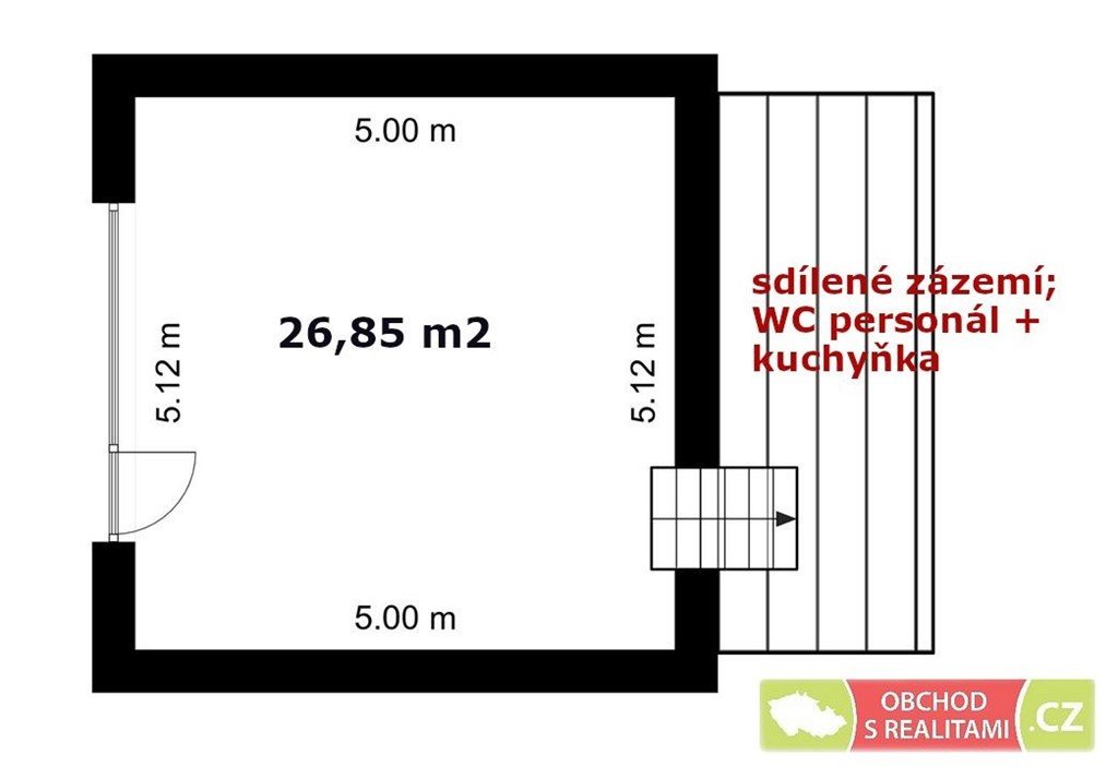 Obchodní prostor má výměru 27 m2, jedná se o téměř čtvercový