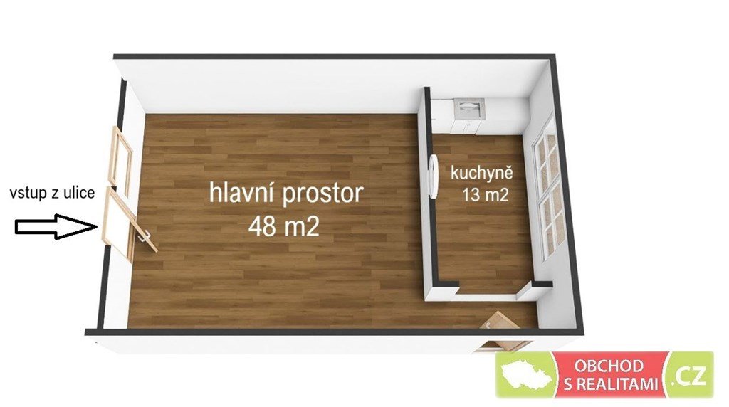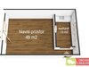 Celková výměra prostoru je 61 m2. Aktuálně je prostor rozdělen