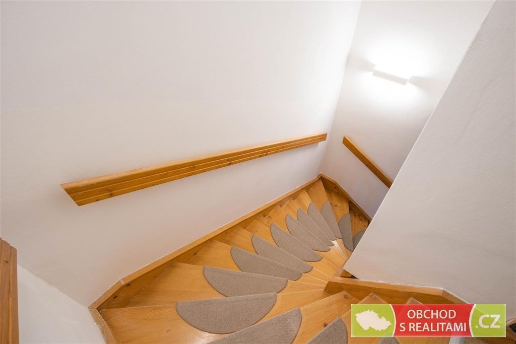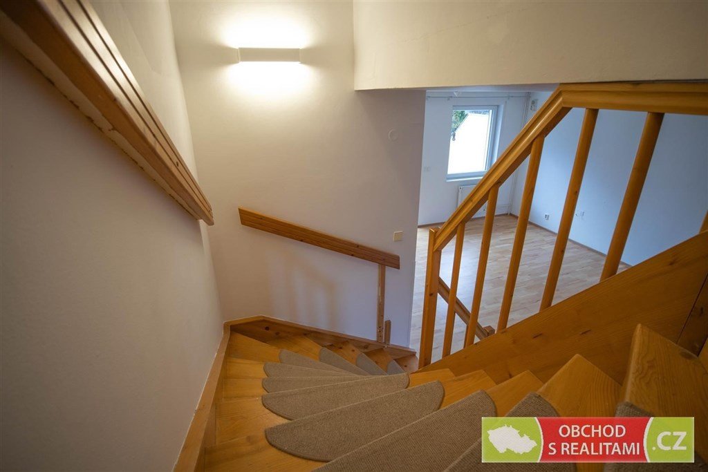 V prvním patře se nachází hlavní obytný prostor s kuchyňským koutem