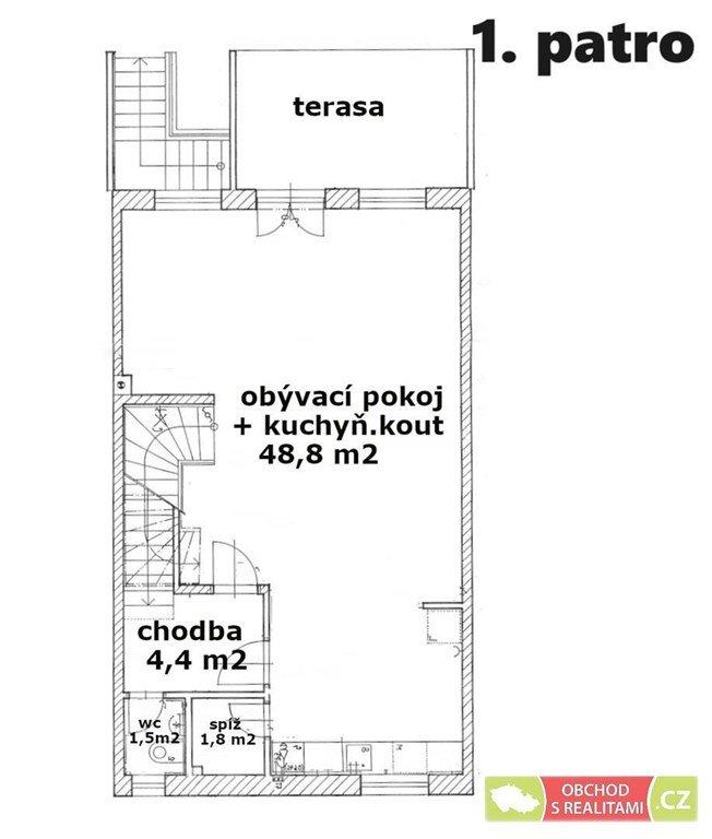 o celkové výměře 49 m2, odtud je výstup na terasu / zahradu, dále se